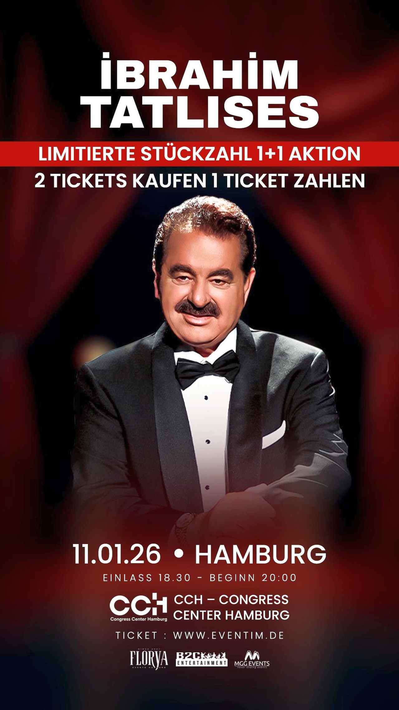 Türk müziğinin efsane ismi İbrahim Tatlıses, 11 Ocak 2026 Pazar akşamı Almanya’nın Hamburg kentinde sevenleriyle buluşacak. CCH – Congress Center Hamburg’da gerçekleşecek dev konserin organizasyonu, Hamburg’un en büyük etkinliklerine imza atan FLORYA EVENTS tarafından düzenleniyor. Gecenin mimarı ise başarılı organizatör Deniz Barha olacak.