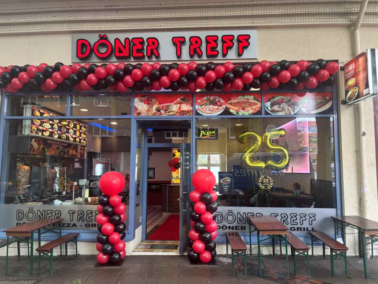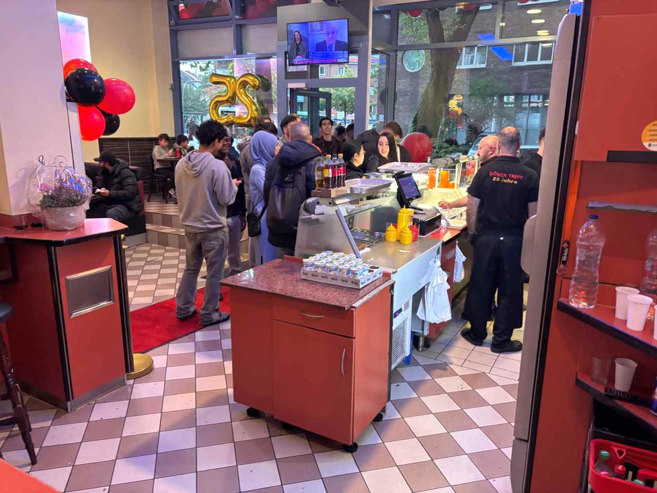 Kutlama günü restoranın önü rengarenk balonlarla süslenirken, 25. yıl pastası kesildi. Misafirler içeriye kırmızı halı üzerinden girerken, mekânın içinde her beş yılda bir gelenek haline gelen “yıldız uygulaması” bu yıl da unutulmadı. Soğutucunun üzerine yerleştirilen beşinci yıldız, Döner Treff’in 25 yıllık başarı hikâyesini simgeledi.