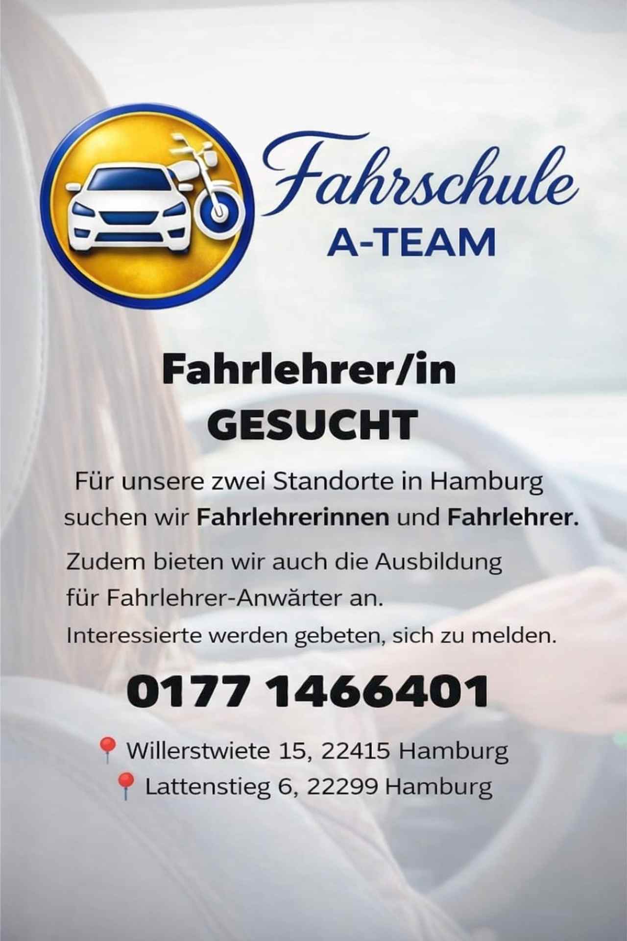 Sürücü eğitmenliği alanında kariyer hedefleyenler için bu ilan, Hamburg’da önemli bir fırsat olarak öne çıkıyor.