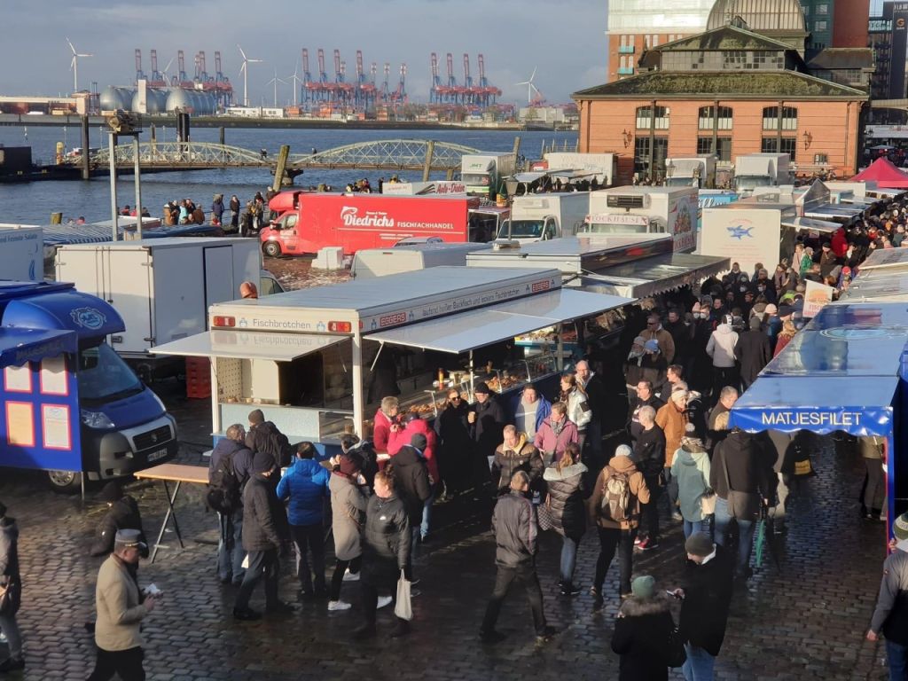 Almanya’nın liman kenti Hamburg’un  Elbe kanalı boyunca kurulan balık pazarı yeniden açıldı. (Fischmarkt) Kovid 19 pandemi döneminde uzun  süre kapalı kalan balık pazarı,. yine geçmiş dönemde olduğu gibi,  renkli, hareketli ve canlı görüntüsünü koruyor!