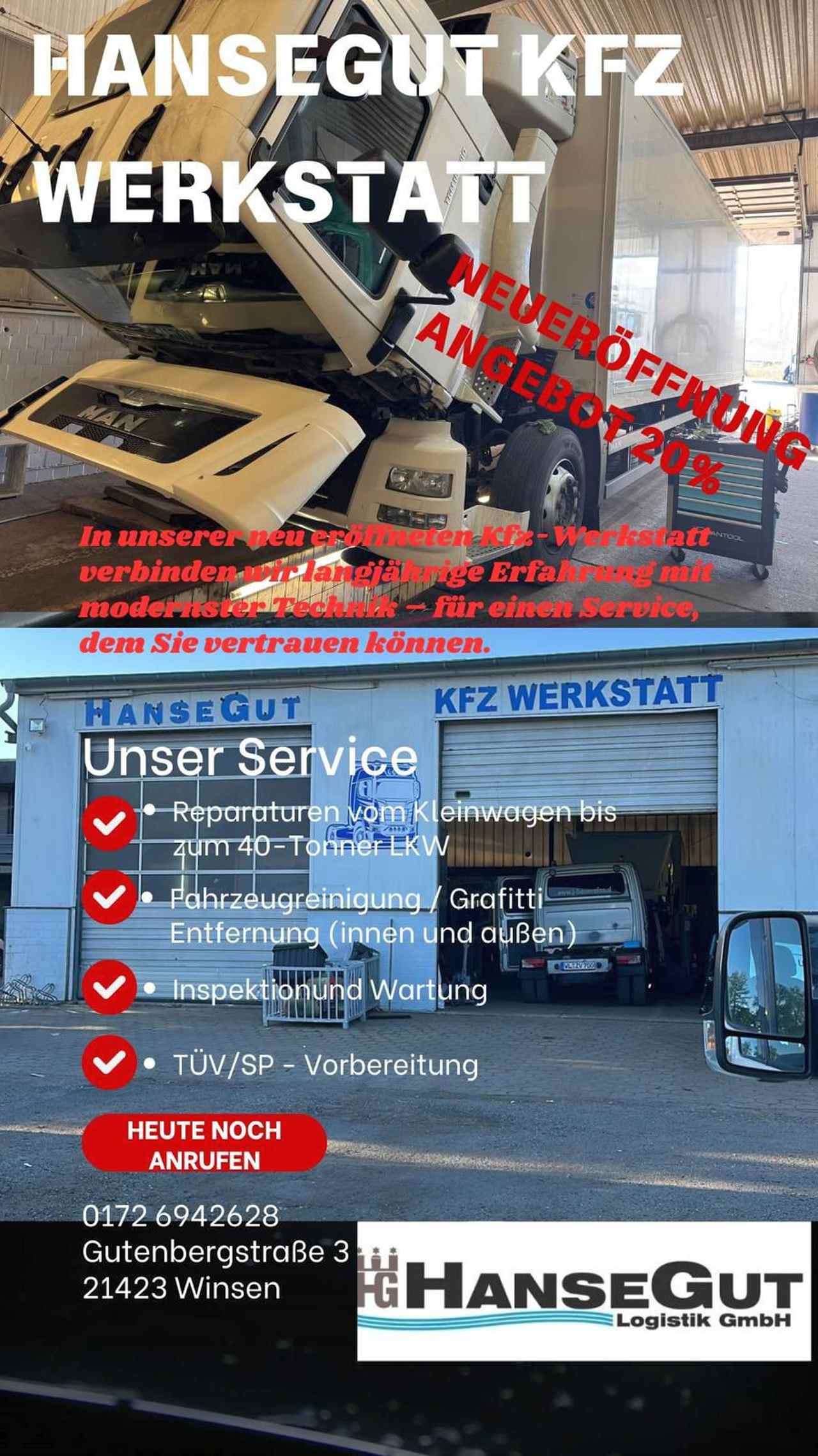 Am Standort König-Georg-Deich 8, 21107 Hamburg betreibt HanseGut ein 120 Quadratmeter großes Büro. Von hier aus organisiert das Unternehmen die tägliche Warenlogistik für Großkunden wie REWE, POST und DSV. Der Fuhrpark besteht aus schweren Nutzfahrzeugen ab 15 Tonnen, die im gesamten Hamburger Stadtgebiet eingesetzt werden.