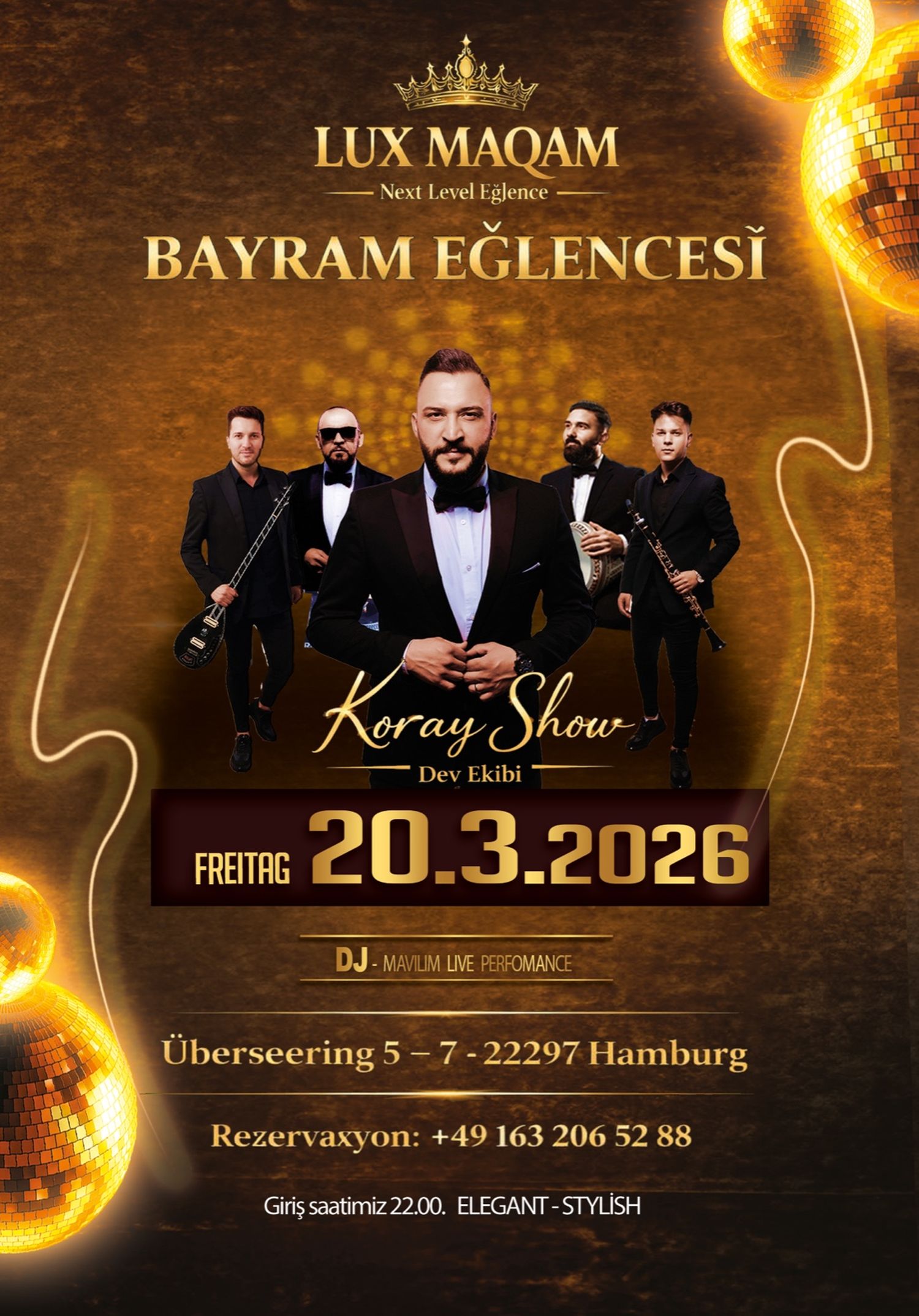 Koray Show, Grup Mavilim ve güçlü sahne ekibi Hamburg’da bayram gecesinde buluşuyor