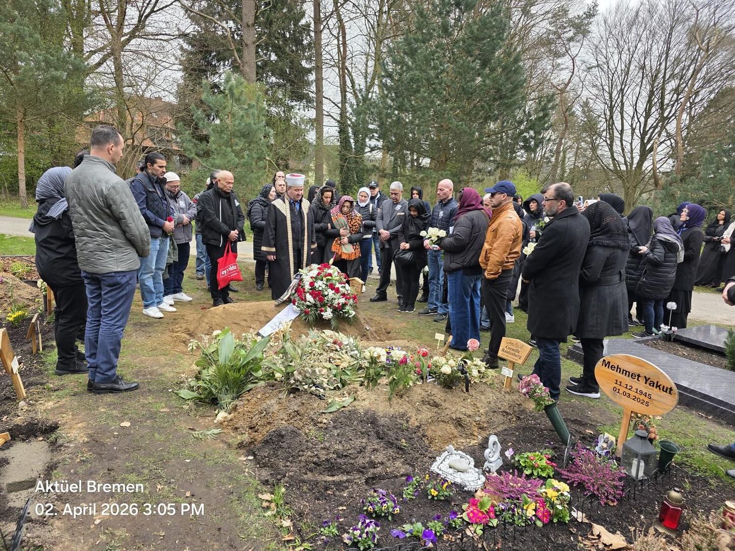 2 Nisan 2026 Perşembe günü saat 14.00’te Ohlsdorf Müslüman Mezarlığı’nda kılınan cenaze namazına 200’ün üzerinde kişi katıldı. Sevenlerinin omuz omuza verdiği törende duygusal anlar yaşandı.
