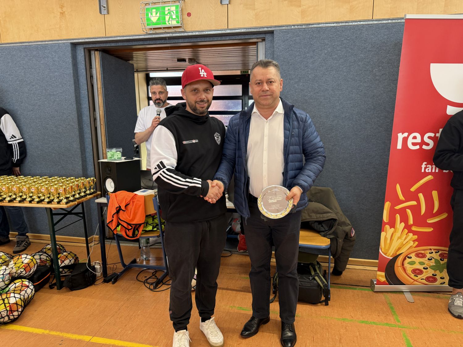 Hamburg’un Wilhelmsburg semtinde bulunan Dratelnstraße Kapalı Spor Salonu, minik futbolcuların büyük heyecanına sahne oldu. Harburg Türkspor organizasyonunda düzenlenen Young Kickers Hamburg salon turnuvası, 10 takımın katılımıyla renkli görüntülerle tamamlandı. Turnuvaya Restablo sponsor olarak destek verdi.